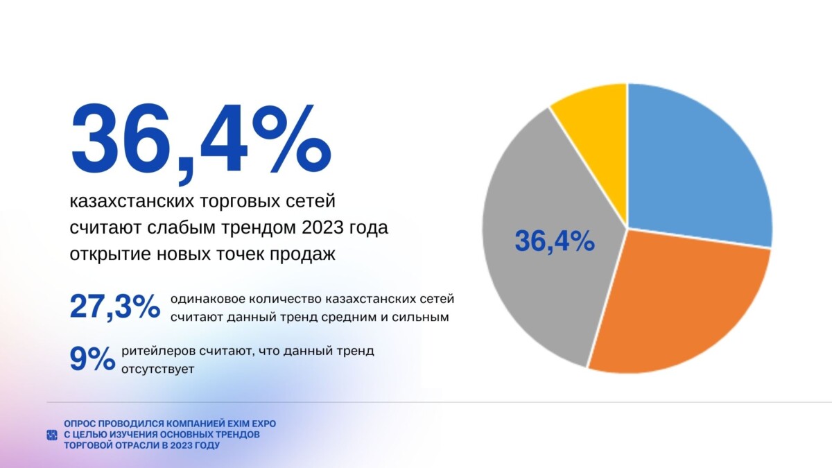 Одним из слабых трендов 2023 года является открытие новых точек продаж. 36,4 % опрошенных не считают это актуальным в период экономической нестабильности.